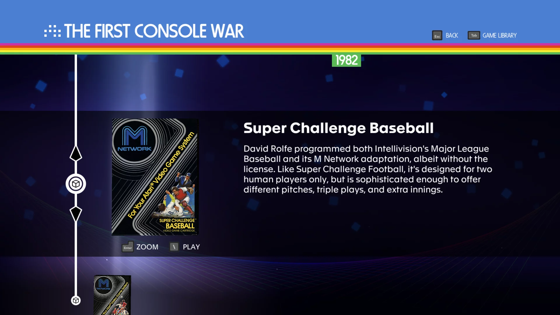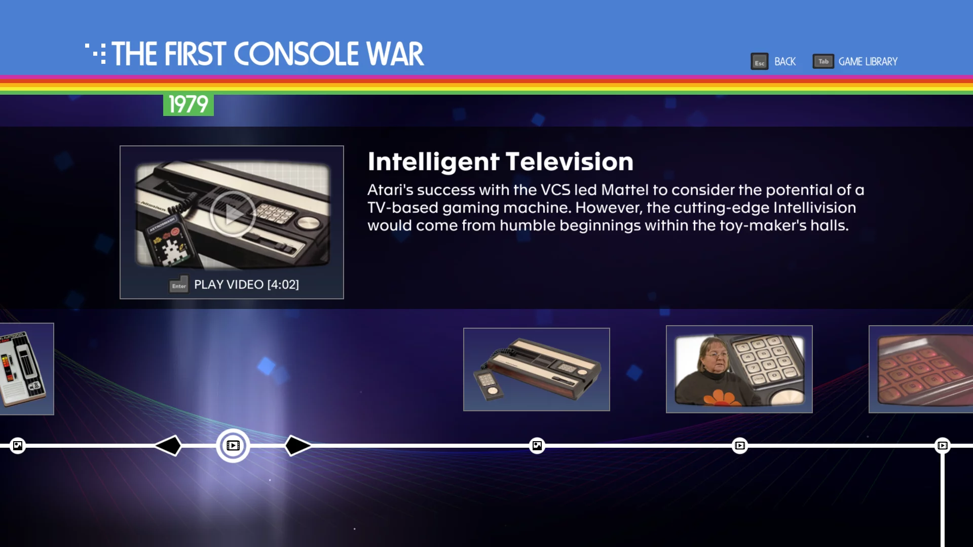 - Objevte značku, která odstartovala moderní videoherní průmysl, a tvůrčí osobnosti, které za ní stojí, prostřednictvím rozhovorů, archivních snímků, speciálních zdrojových materiálů a obsahu ze zákulisí v interaktivní časové ose. Prozkoumejte také historii kultovních značek, jako je Intellivision společnosti Mattel a Stern Electronics!
