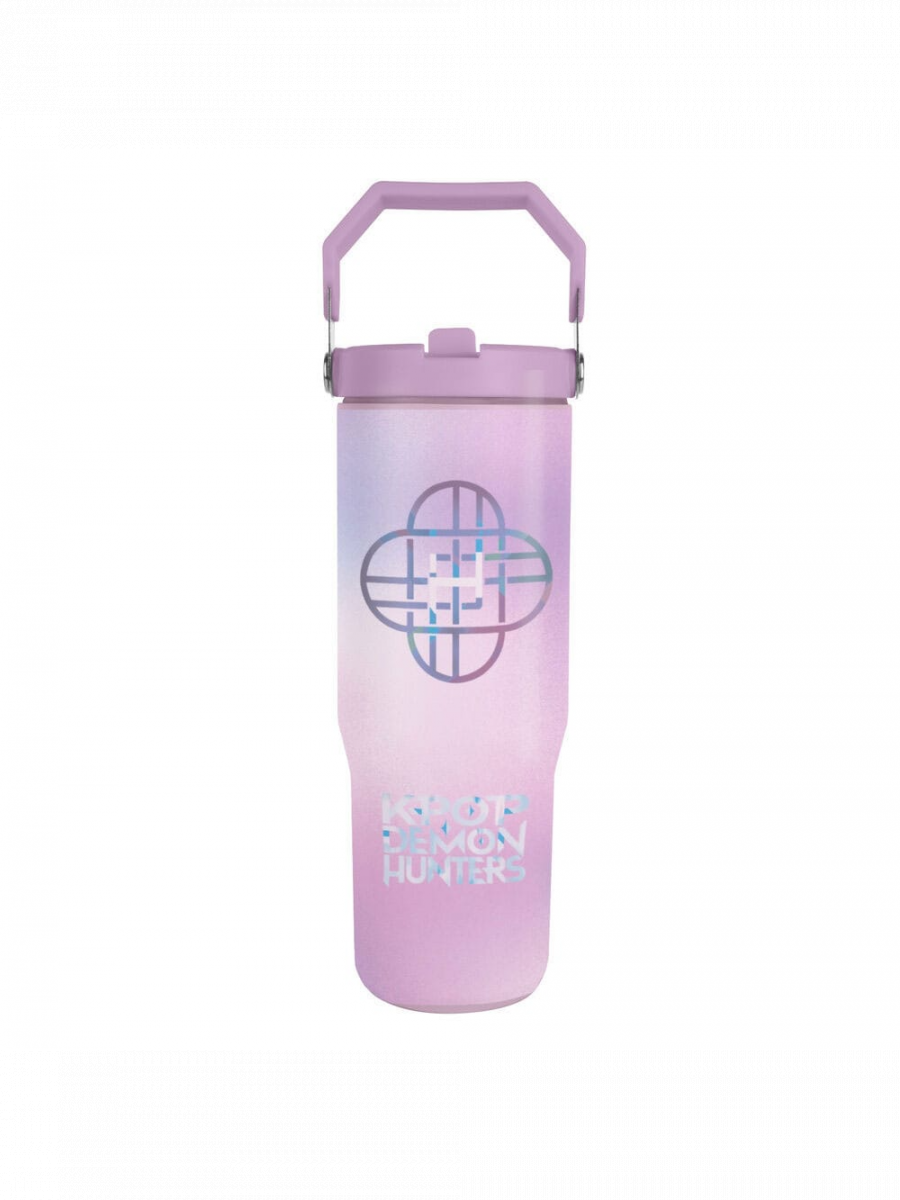Stylový cestovní hrnek KPop Demon Hunters – Logo v pastelových barvách potěší všechny fanoušky tohoto energického animovaného světa.