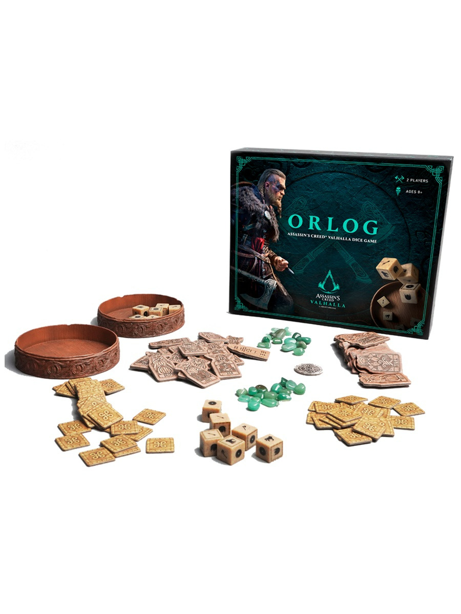 Oblíbili jste si ve vikingském Assassínovi deskovou hru Orlog? My vám nyní nabízíme tuto jedinečnou hru s kostkama v reálné podobě. Vyzvěte své kamarády na rychlý souboj a poté třeba na krátkou výměnu bardských veršů! Orlog je svižná strategická hra s kostkami, která nikdy nekončí jen jednou partičkou.