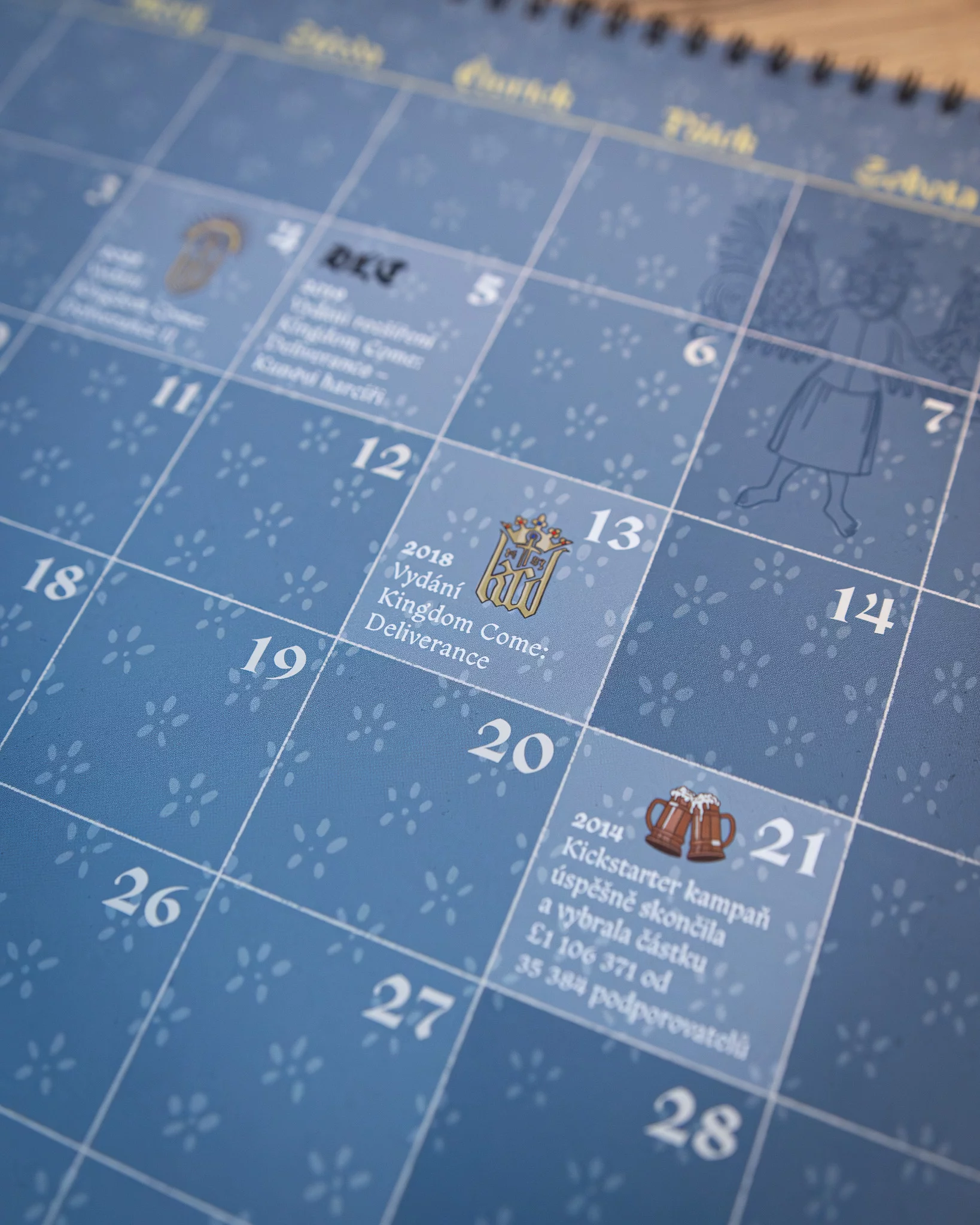 Kalendář obsahuje i významná data spojená se sérií Kingdom Come a je tak nejen praktickým, ale i sběratelským kouskem pro všechny fanoušky velkolepého díla Warhorse Studios.