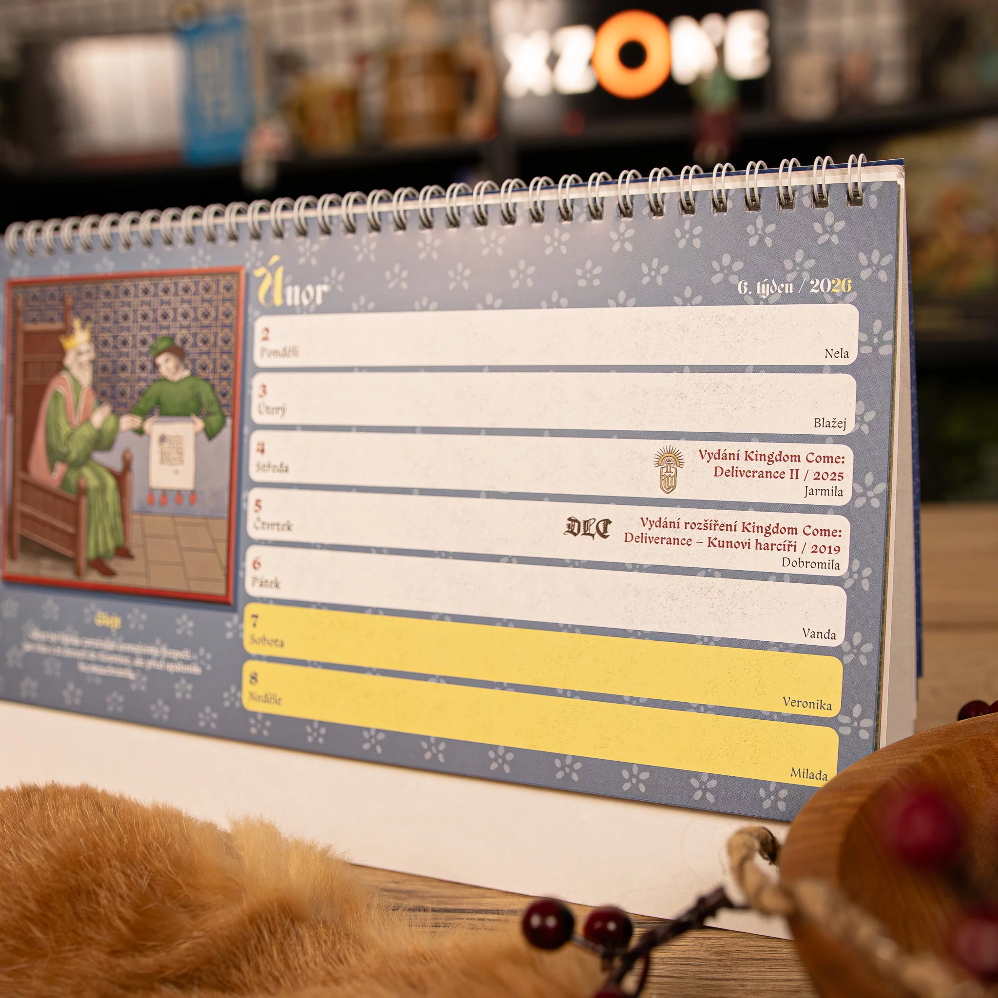 Prožijte rok 2026 ve středověkém rytmu s oficiálním stolním kalendářem Kingdom Come: Deliverance II. Každý týden doprovází ilustrace z herního kodexu a dozvíte se tak pokaždé nějakou zajímavost, od bitev a táborového života až po svátky a zvyky tehdejších Čech.
