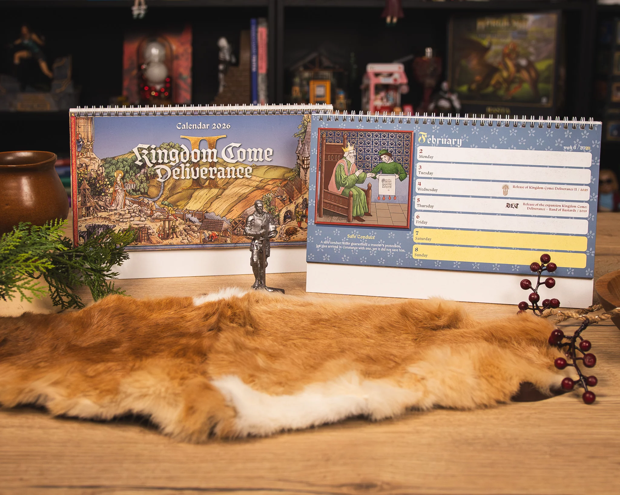 Prožijte rok 2026 ve středověkém rytmu s oficiálním stolním kalendářem Kingdom Come: Deliverance II. Každý týden doprovází ilustrace z herního kodexu a dozvíte se tak pokaždé nějakou zajímavost, od bitev a táborového života až po svátky a zvyky tehdejších Čech.