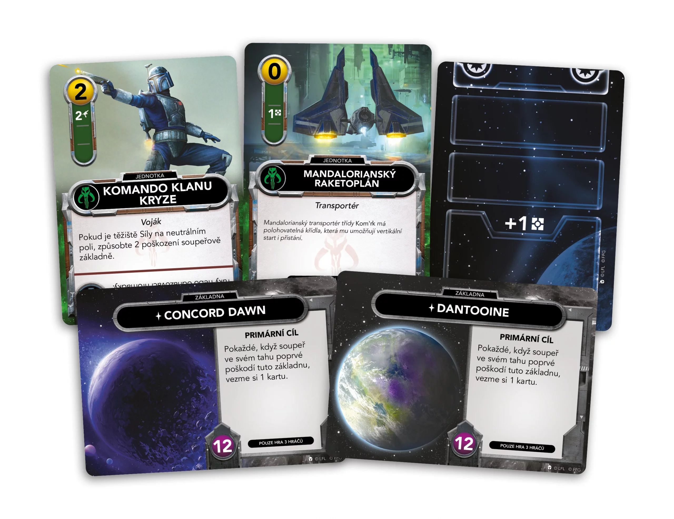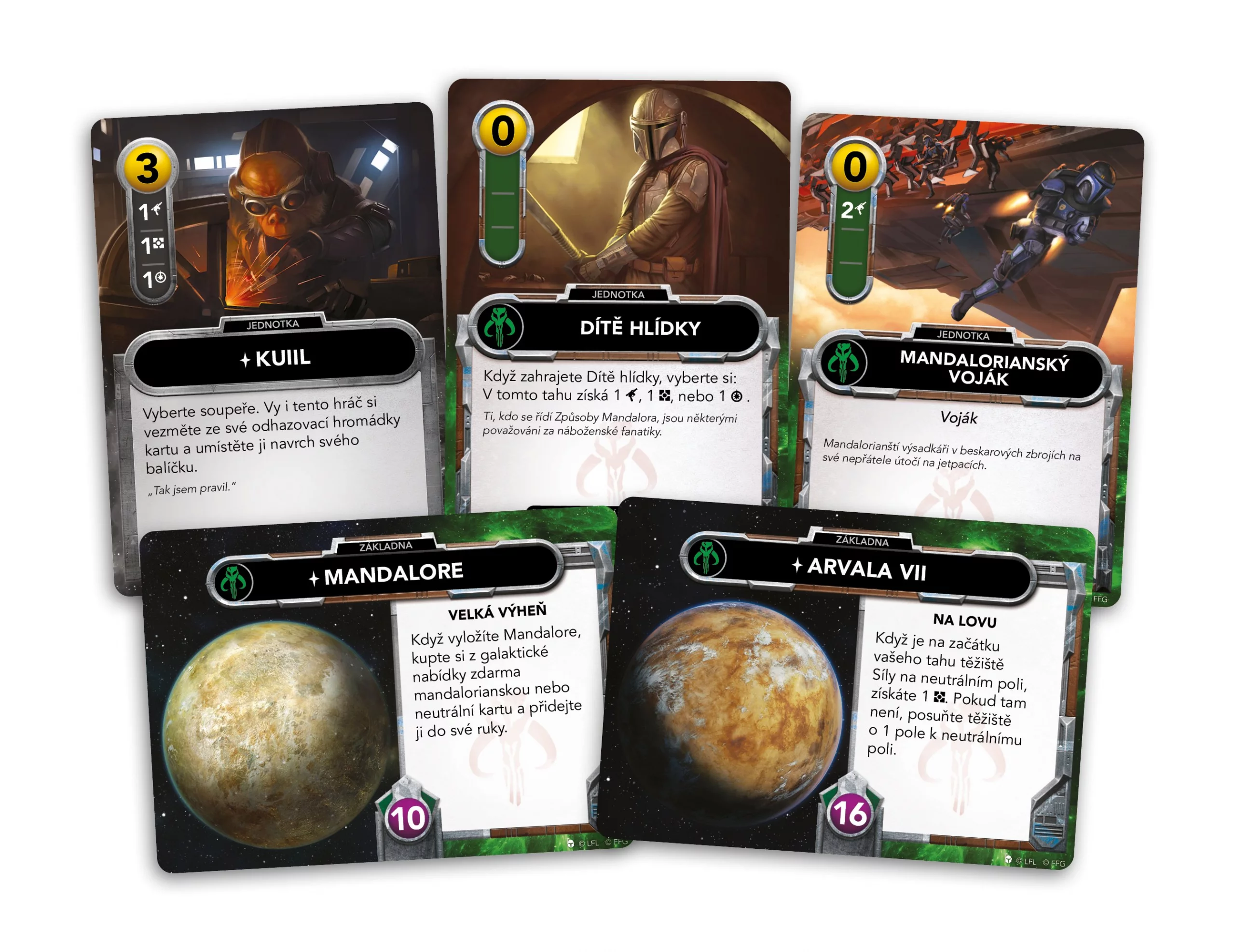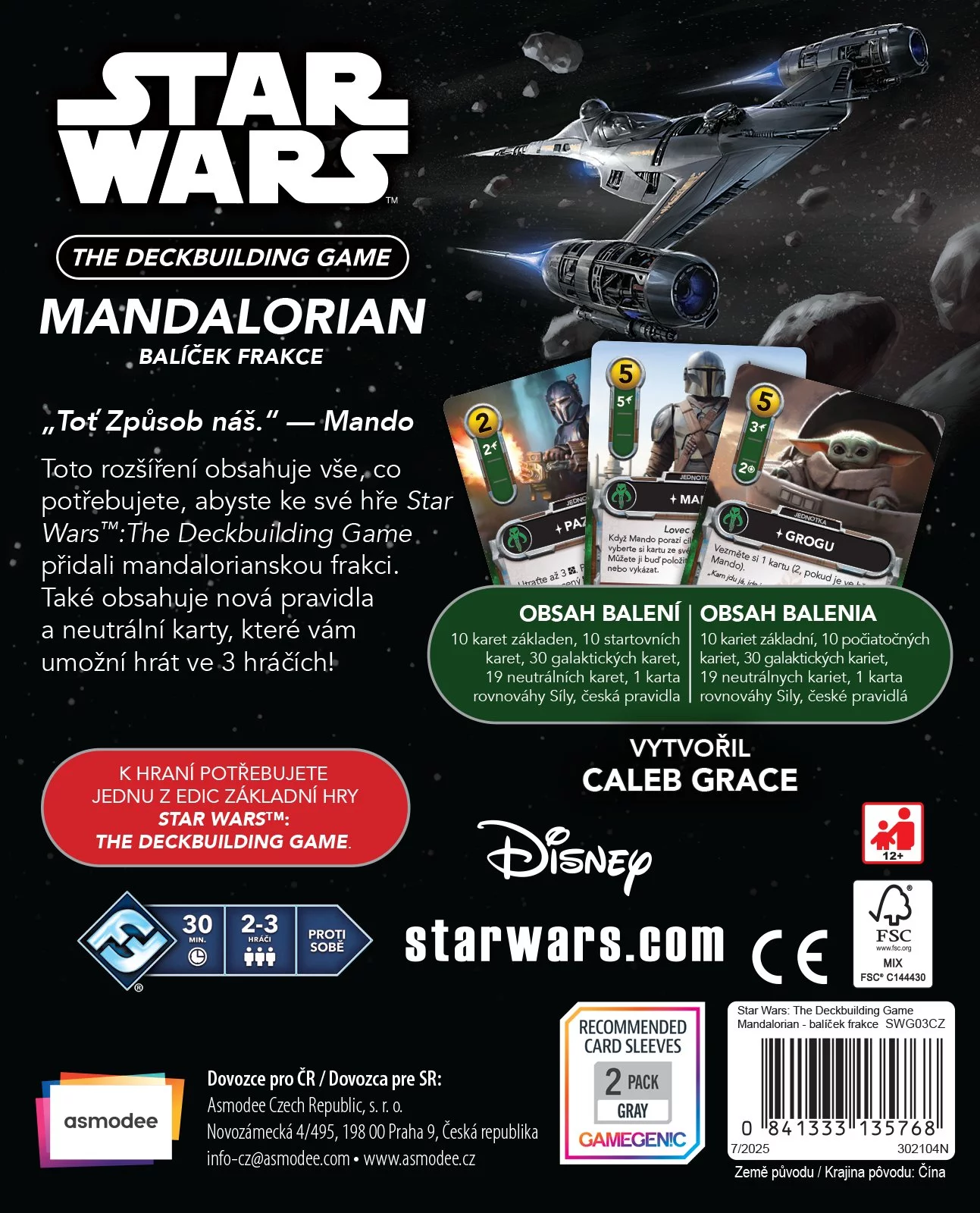 Rozšíření Mandalorian obsahuje vše, co potřebujete, abyste ke své hře STAR WARS™: THE DECKBUILDING GAME přidali mandalorianskou frakci: 10 karet základen, 10 startovních karet, 30 galaktických karet a 1 oboustrannou kartu rovnováhy Síly.