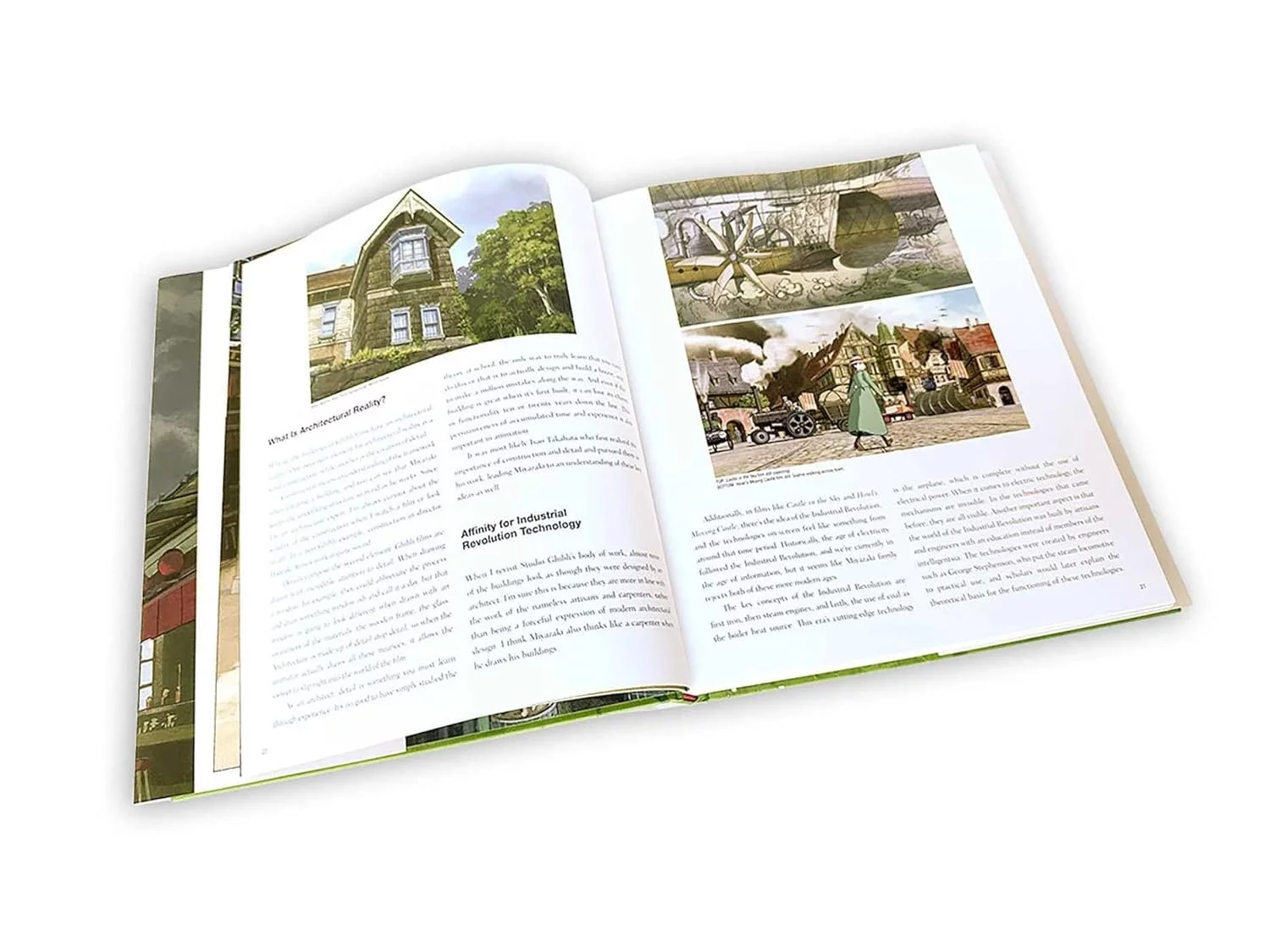 Výrazné interiéry, nápadité exteriéry, úchvatné krajiny a vzájemné působení všech tří složek jsou podrobně prozkoumány prostřednictvím sebraných poznámek uznávaného režiséra Hayao Miyazakiho, exkluzivního komentáře renomovaného architekta Terunobu Fujimoriho a citací výtvarníků a uměleckých ředitelů oblíbených filmů Studia Ghibli.Počet stran: 192