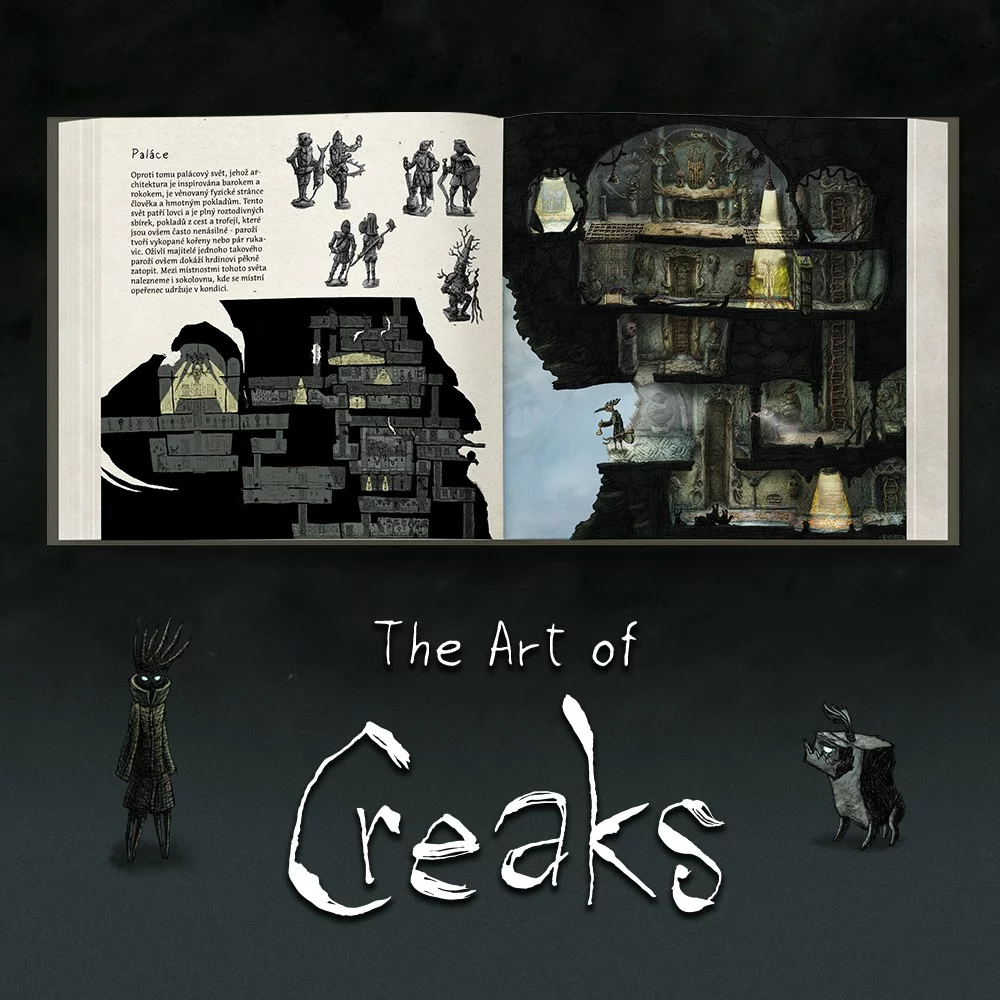 Kniha The Art of Creaks je pomyslnou třešničkou na dortu za 8letým úsilím, které stálo za vznikem hry. Autoři Radim Jurda a Jan Chlup vás vlastními slovy provedou počátkem vývoje, přes mnoho a mnoho konceptů, až po finální audiovizuální dílo, na kterém nakonec spolupracoval celý tým šikovných českých rukou.