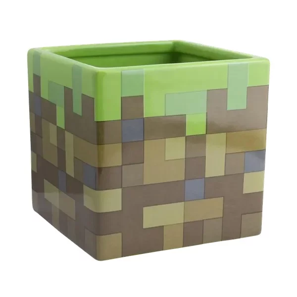 Keramický květináč stylizovaný do podoby trávové kostky ze hry Minecraft. Pokud byste ho nechtěli využít jako květináč, fantazii se meze nekladou. Může sloužit například stojan na psací potřeby nebo jen jako hezká dekorace.