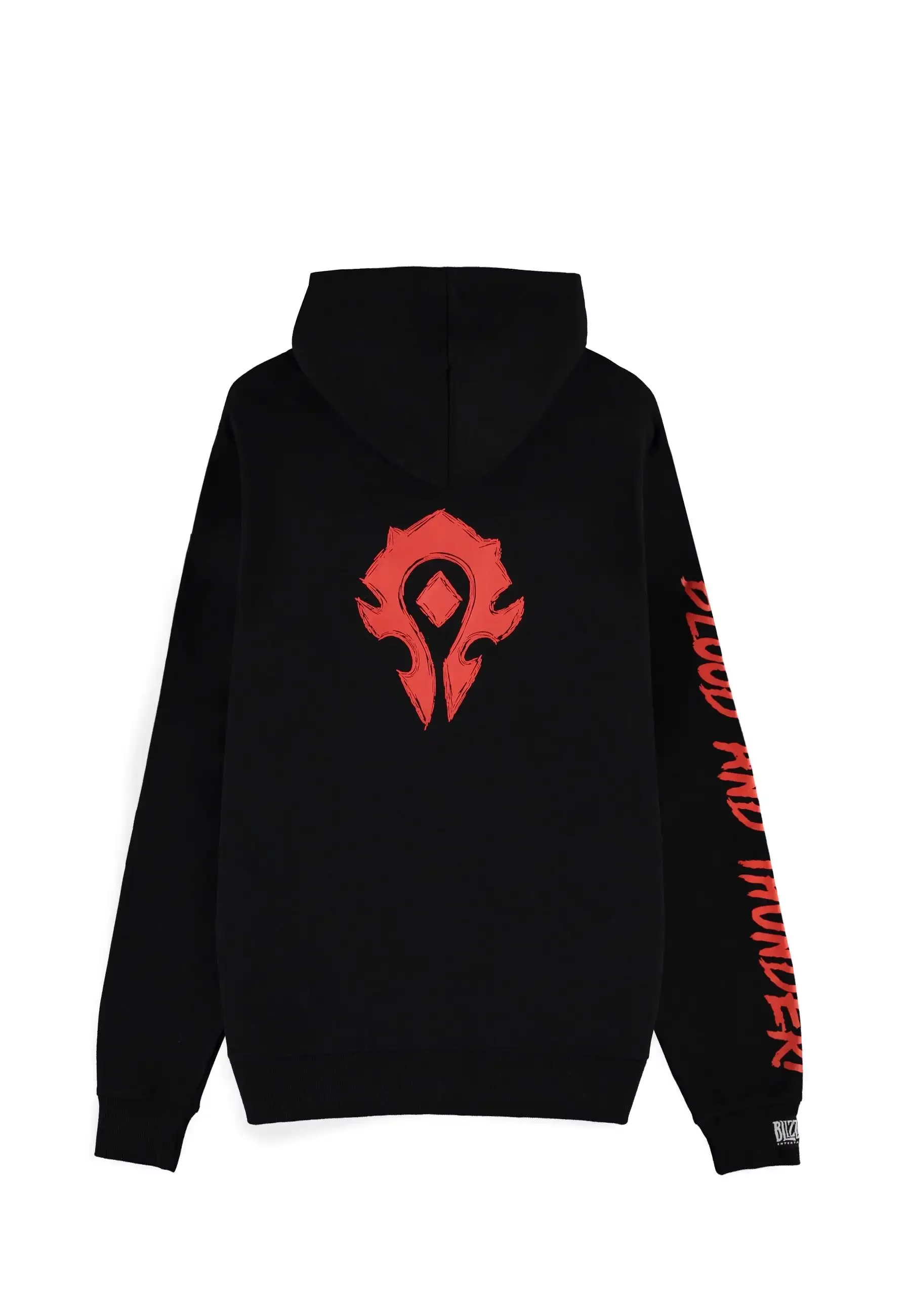 Výrazné červené logo frakce doplňuje nápis Blood and Thunder! na rukávu – ikonické válečné heslo, které každý fanoušek pozná. Pohodlný střih a kvalitní zpracování dělají z této mikiny ideální volbu pro všechny bojovníky z Azerothu.Materiál: 100% bavlna -