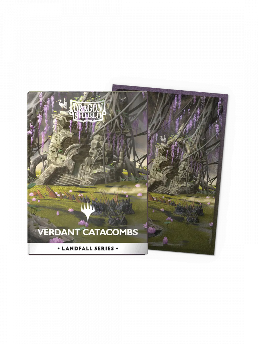 Vydejte se do zarostlých ruin a temných zákoutí s obaly Dragon Shield Landfall Series – Matte Dual Sleeves Verdant Catacombs. Atmosférická ilustrace inspirovaná světem Magic: The Gathering přenese vaše balíčky do tajemných katakomb plných zeleně a dávno zapomenutých příběhů.