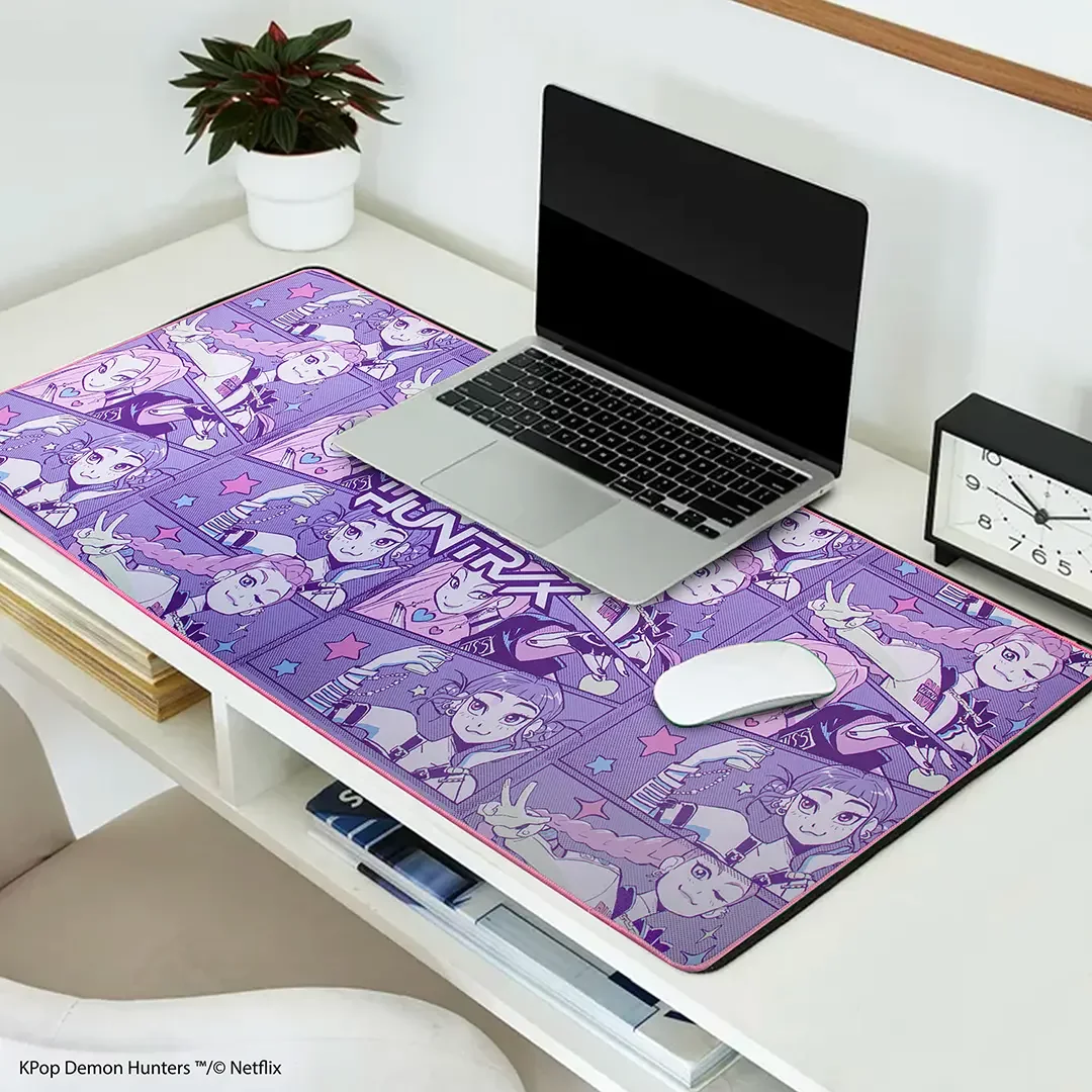 Styl, energie a K-pop vibe na každém pohybu myši. Podložka Huntrix z KPop Demon Hunters přináší výrazný design plný barev, postav a detailů, které okamžitě oživí tvůj herní i pracovní setup.