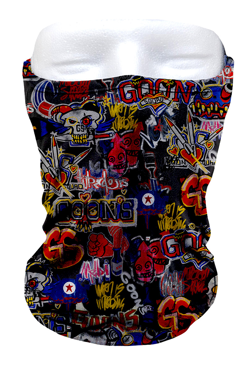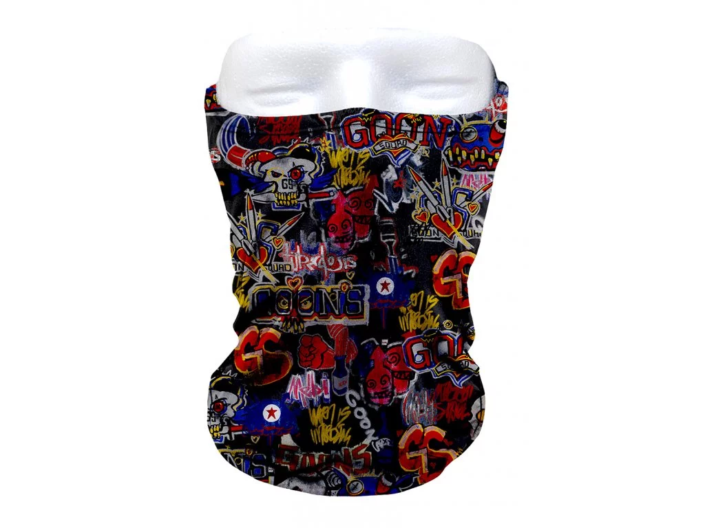 Staňte se součástí Goon Squadu s vizuálně nabitým nákrčníkem. Skvělý doplňek, který poslouží kdykoliv kdy potřebujete mít zakrytá ústa, nebo zateplený krk. Oficiální Rage 2 merchandise. Vyrobeno z polyesteru.Materiál: 100% Polyester