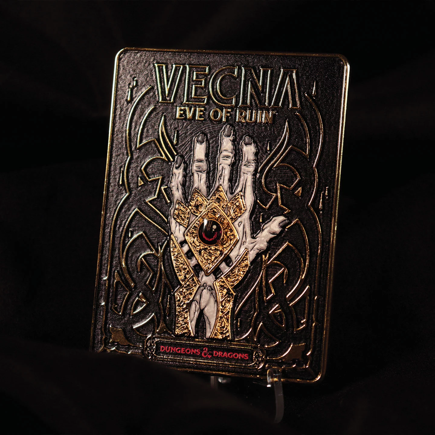 Zanechte otisk temné magie ve své sbírce s touto oficiální limitovanou plaketkou inspirovanou Dungeons and Dragons, Vecna Eve of Ruin. Kvalitní kovové provedení s výrazným reliéfem zdůrazňuje ikonickou podobu Vecnovy ruky a mystických run, které okamžitě přitáhnou pozornost každého fanouška světa DnD.
