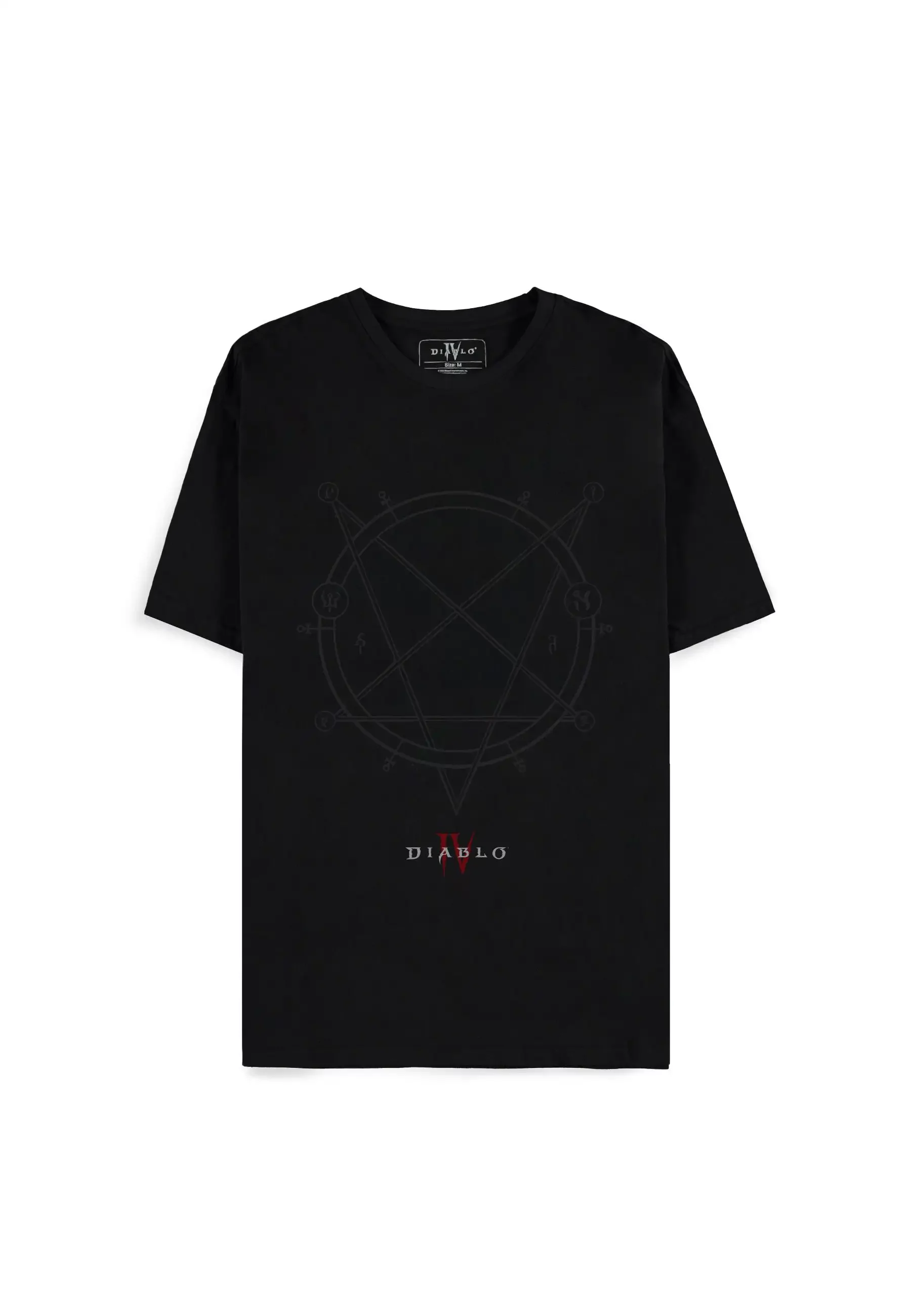 Temné dámské tričko inspirované světem Diablo IV zaujme decentním, ale silným motivem magického kruhu.
