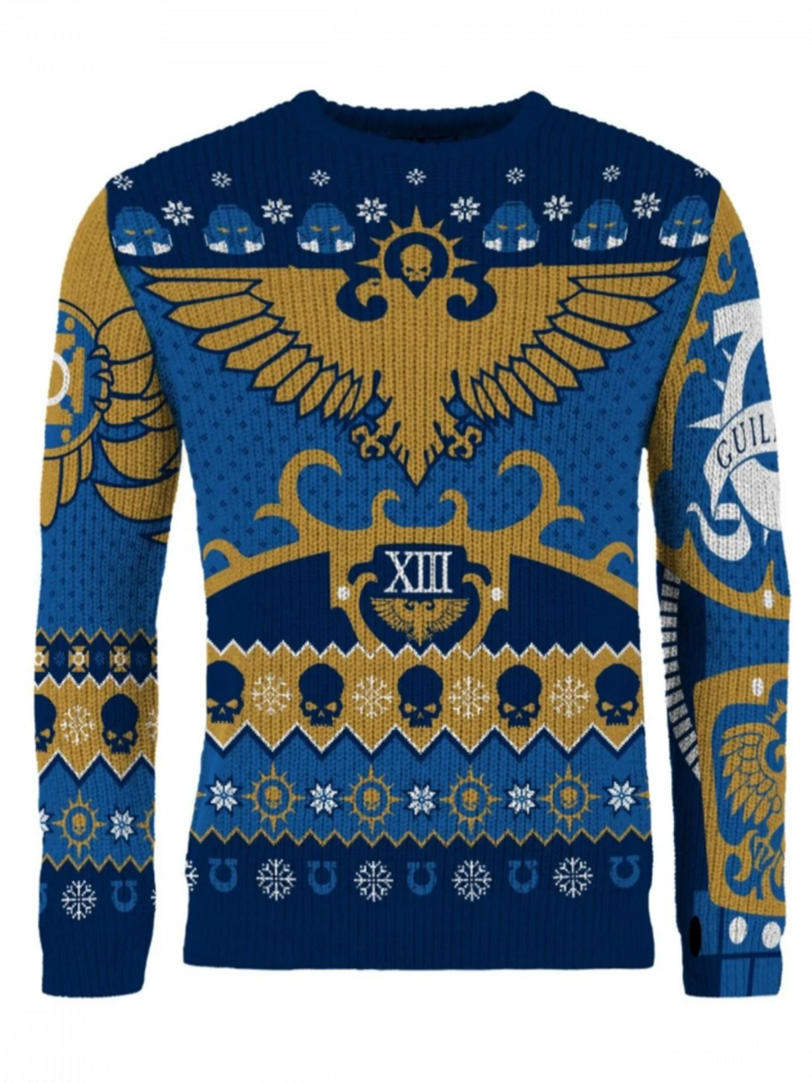 Oslavte Vánoce v imperiálním stylu. Modro-zlatý svetr s ikonografií Warhammer 40,000 je ideální pro všechny věrné fanoušky Ultramarines a Impéria lidstva.